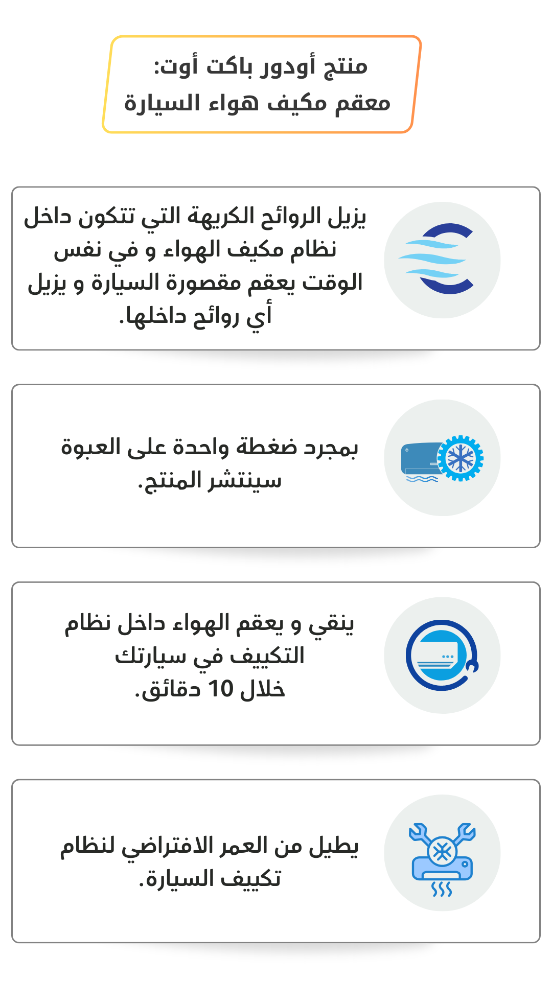 - افتح النوافذ بالكامل مع الابقاء على تشغيل السيارة و التكييف لكي تقل رائح المنتج داخل مقصورة السيارة لمدة خمس دقائق