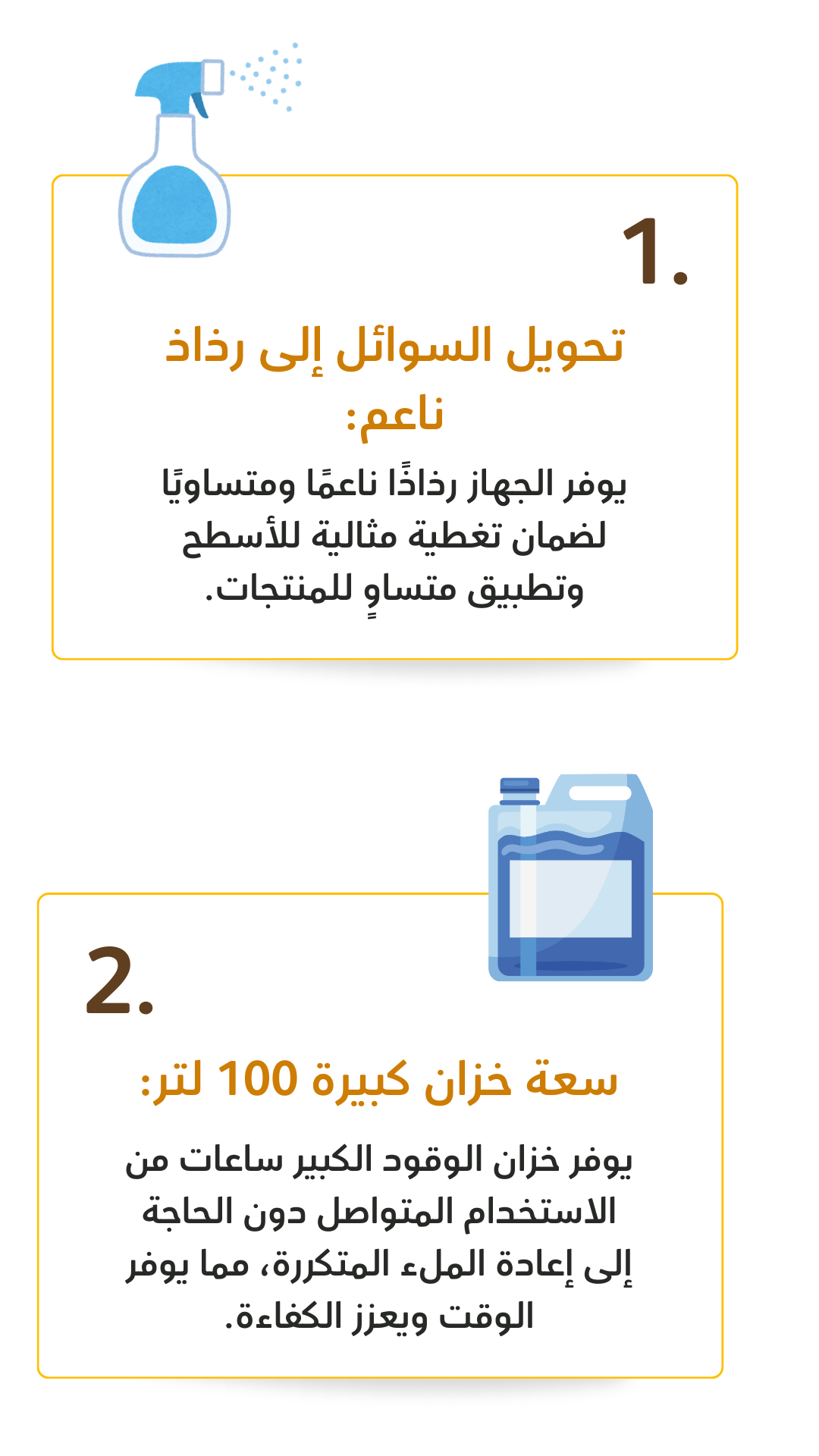 الحل الأمثل لمراكز التلميع والمتخصصين. يتميز الجهاز بسعة خزان كبيرة تبلغ 100 لتر، مما يجعله مثاليًا للاستخدام المستمر دون الحاجة إلى إعادة الملء المتكررة.