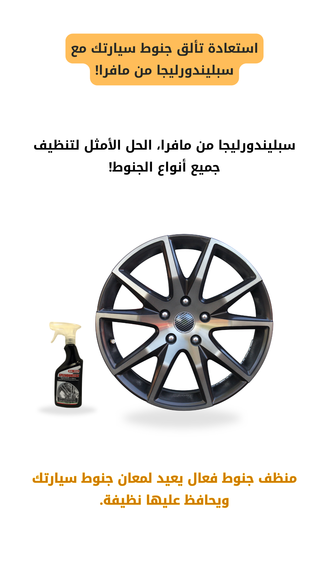 - ينصح بتنظيف كل جنط على حدى لكي لا يجف المنتج على سطح الجنوط
